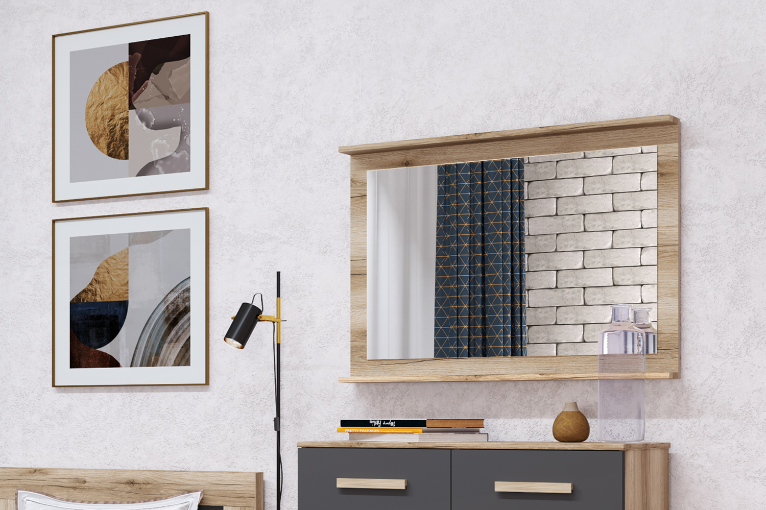 Зеркало гармонично дополнит комод или письменный стол из той же серии «Вега Скандинавия», превратив их в удобный туалетный столик. Практичность, безопасность и эстетика — в одном