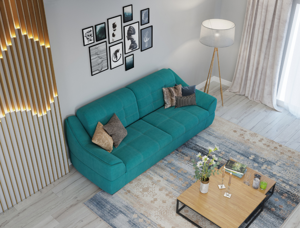 Характерной особенностью дивана являются широкие подлокотники, глубокое посадочное место и удобная спинка с фиксированными подушками. Дополнительно диван можно комплектовать декоративными подушками.