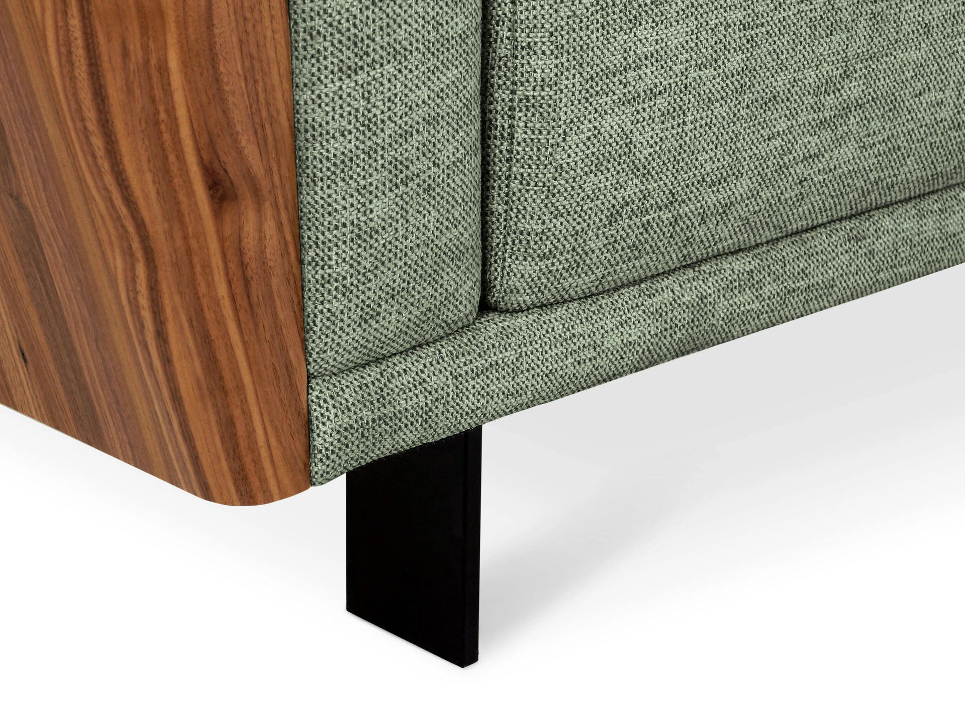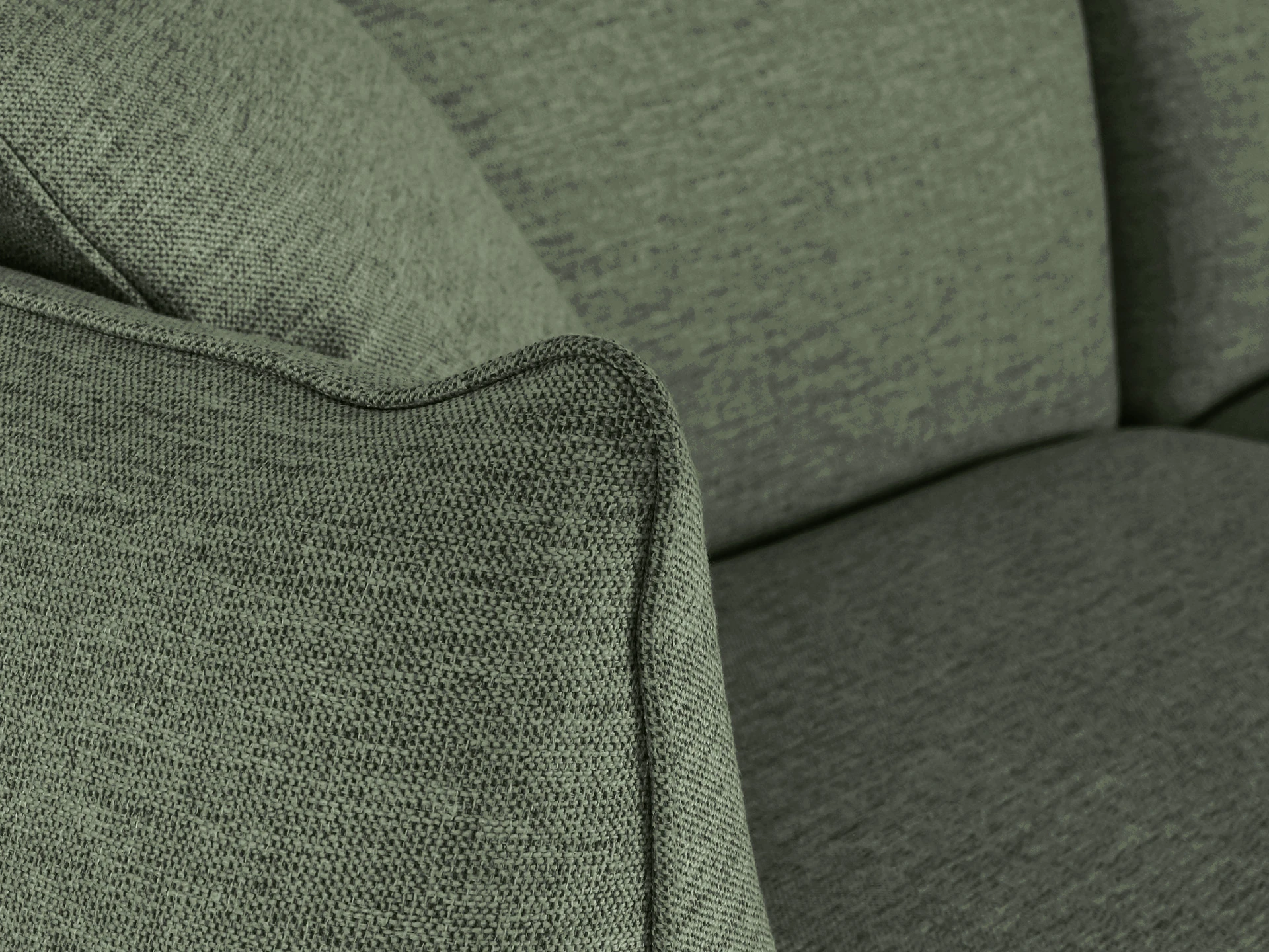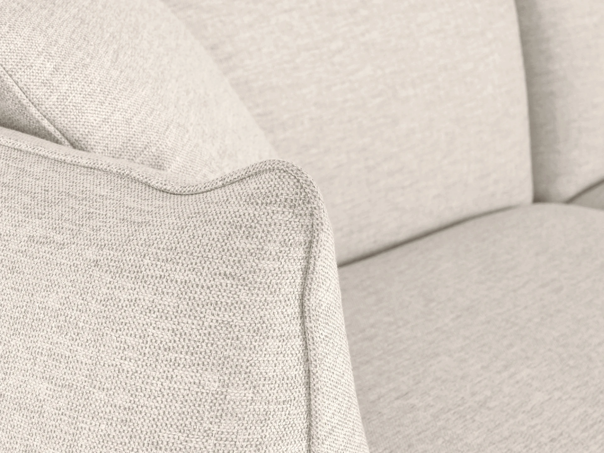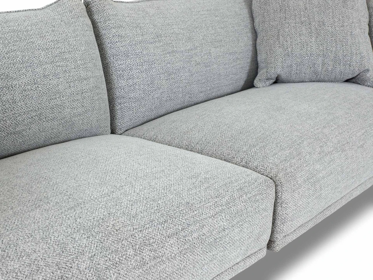 Материал обивки - рогожка, материал ножек - металл, материал подлокотников - МДФ в шпоне. Наполнитель подушек и сиденья - пух/перо. Лицевой чехол декоративных подушек - съемный, на молнии.