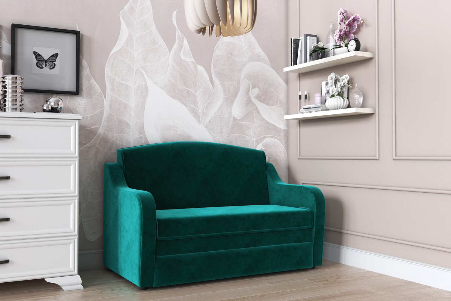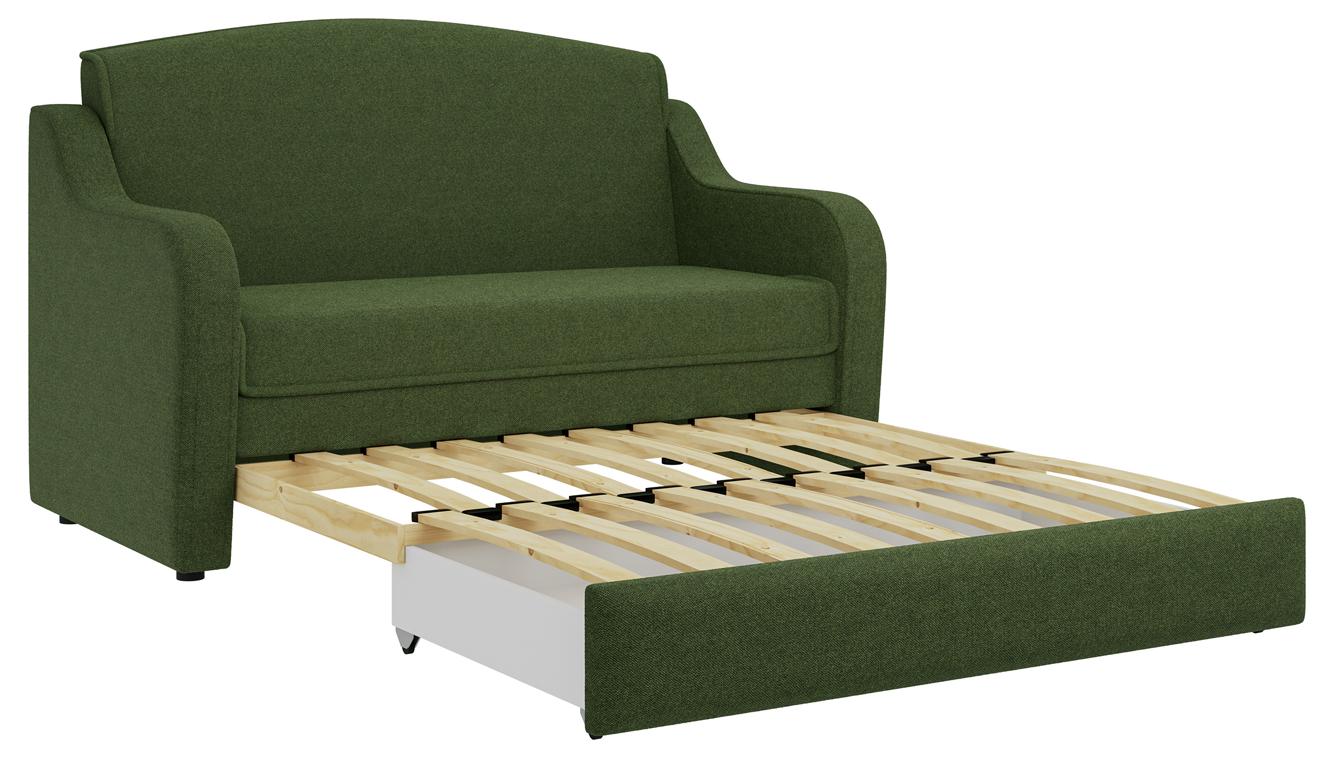 Наполнение дивана: ППУ, создающий мягкость и упругость. Ножки выполнены из металла, окрашены в черный цвет, высота ножек — 100 мм. Диван оснащен механизмом трансформации «Выкатной», позволяющим быстро превратить его в спальное место.