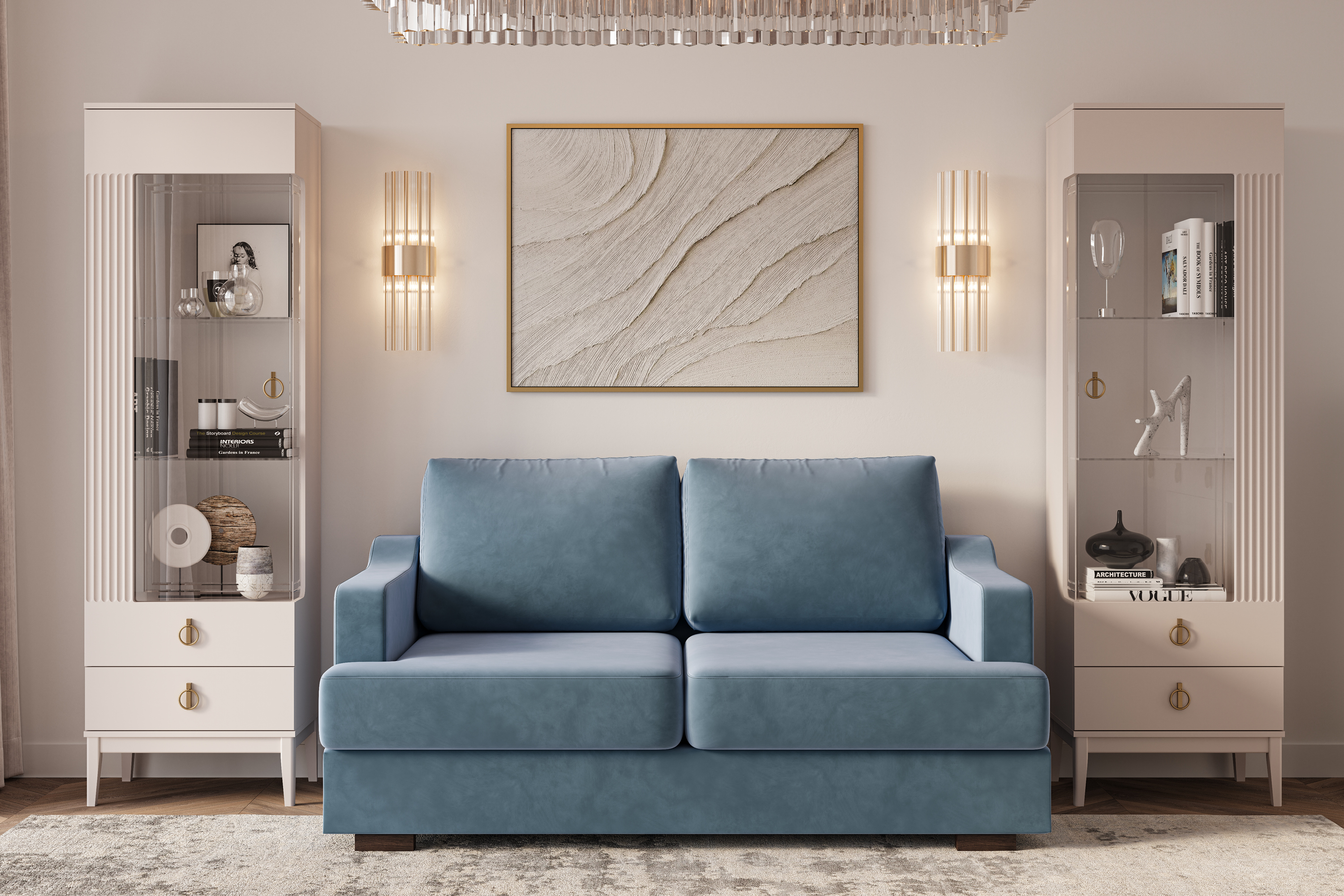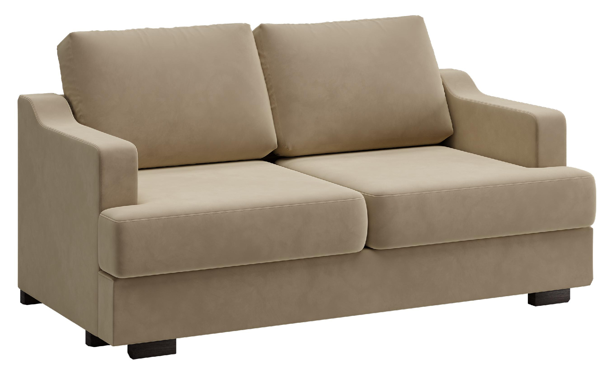 Задняя стенка выполнена из основной ткани, что делает изделие эстетичным и аккуратным. Диван выдерживает нагрузку до 90 кг на одно спальное место.