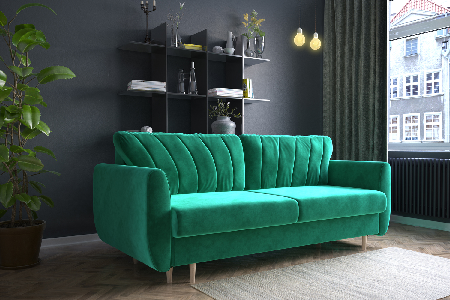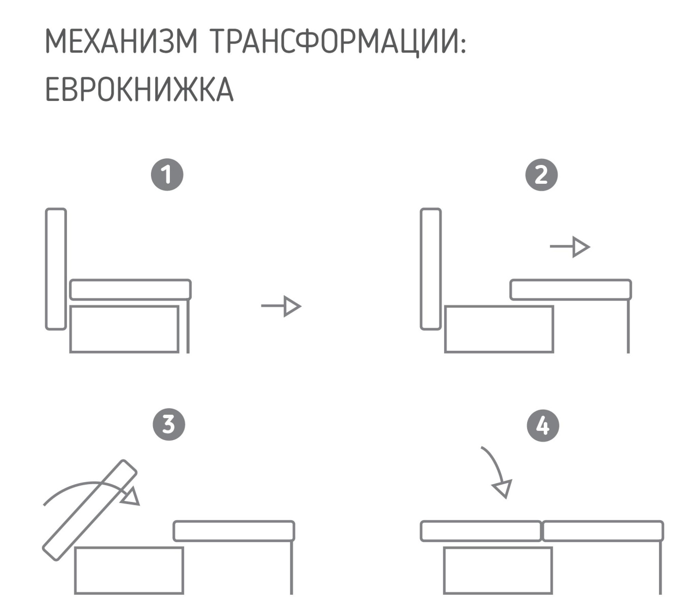 Высота сидения от пола составляет 490 мм. Глубина сиденья с подушками — 700 мм, без подушек — 900 мм. Приспинные подушки имеют размеры 1080 х 490 х 200 мм.