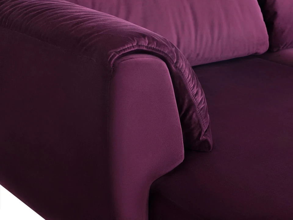 Оригинальный вид дивану придают подлокотники и спинка сложной формы: они скруглённые, многослойные, подлокотник и вовсе двойной: основная часть дополняется несъёмными подушками. На Marsala удобно сидеть, лежать, читать, делать всё, что угодно! Глубина сиденья — 100 см, вы можете устроиться с максимальным комфортом. За мягкость и поддержку отвечает наполнитель — Memory Foam, холлофайбер и другие современные виды пенополиуретана.