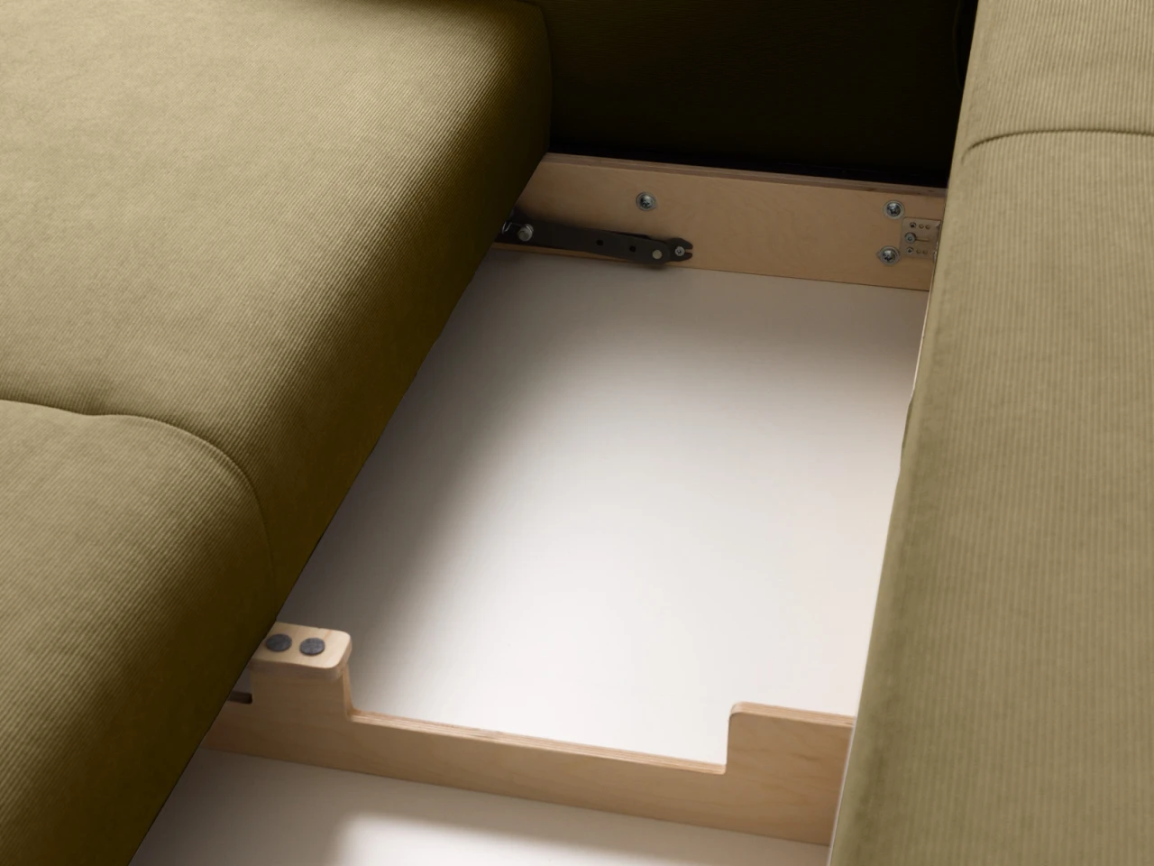 Диван Menfi превращается в кровать с помощью выдвижного механизма «еврокнижка» — прост и надежен в эксплуатации. Чтобы трансформировать диван нужно вытянуть секцию сиденья вперед, а на освободившееся место положить спинку дивана. Под сиденьем есть ниша, в которой можно хранить белье, текстиль, различные вещи.