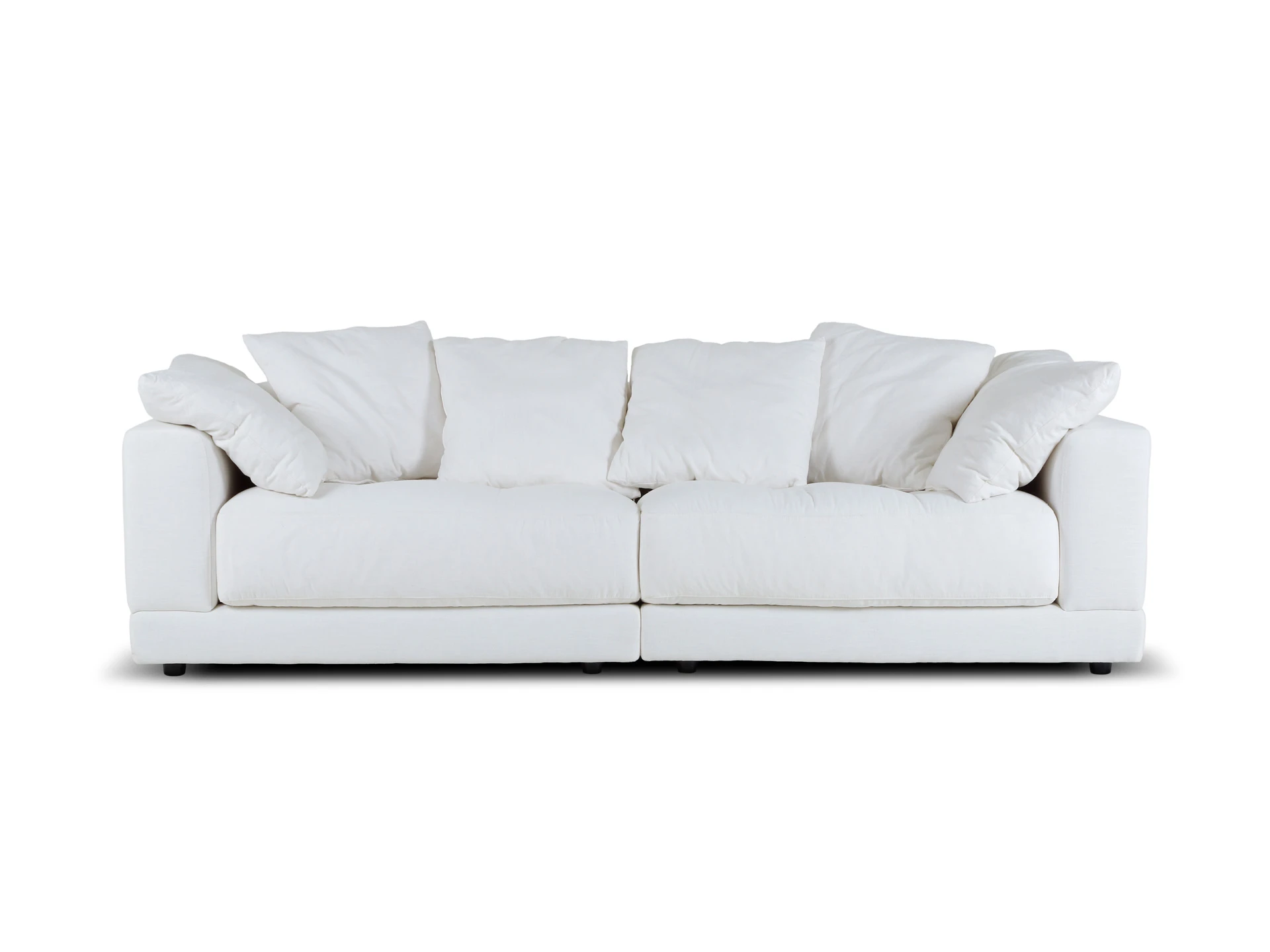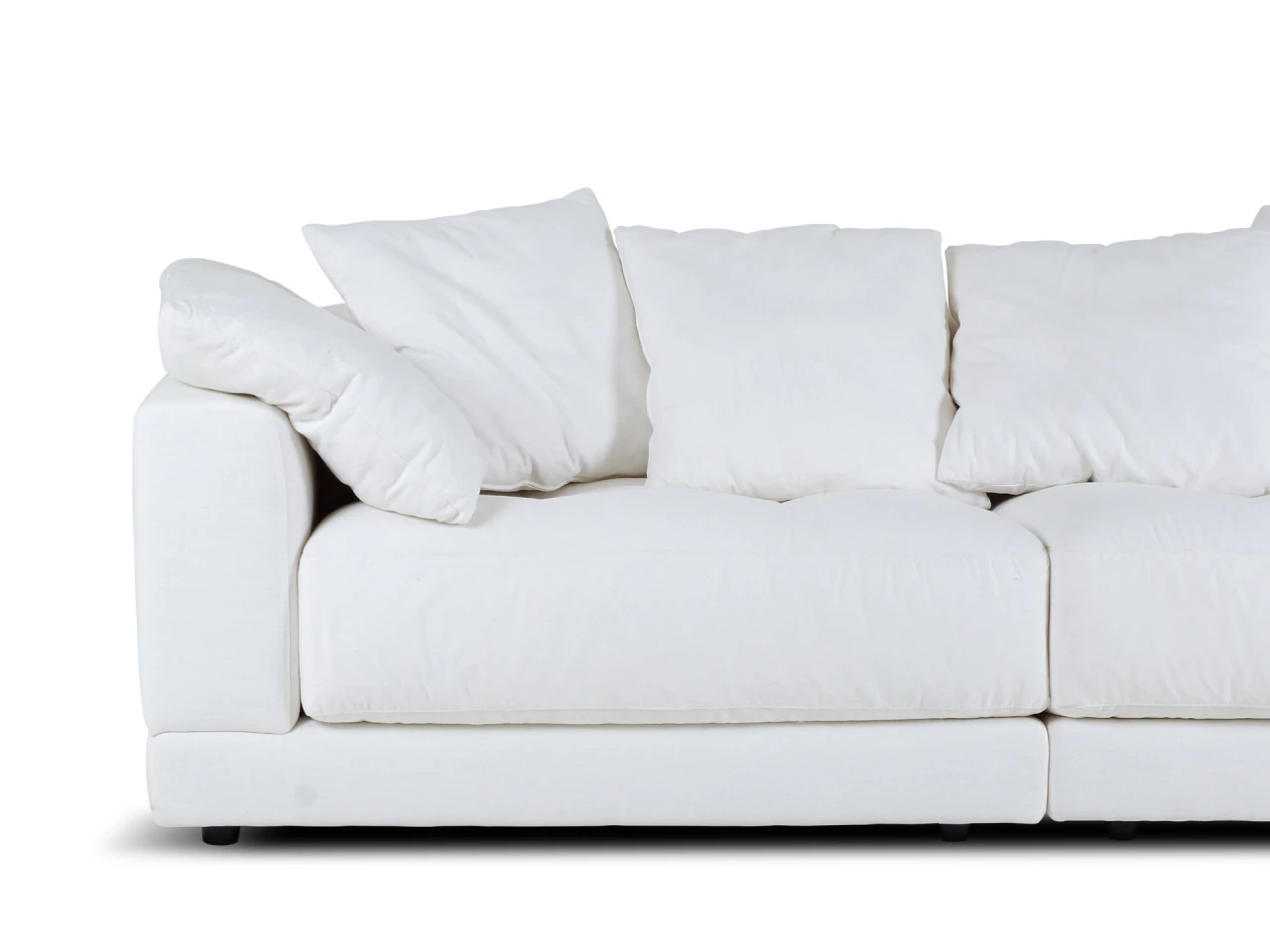 Материал обивки - ткань (80%вискоза, 20% лен), материал ножек - пластик. Наполнитель подушек - пух/перо. Лицевые чехлы декоративных подушек и подушек для сидения - съемные, на молнии.