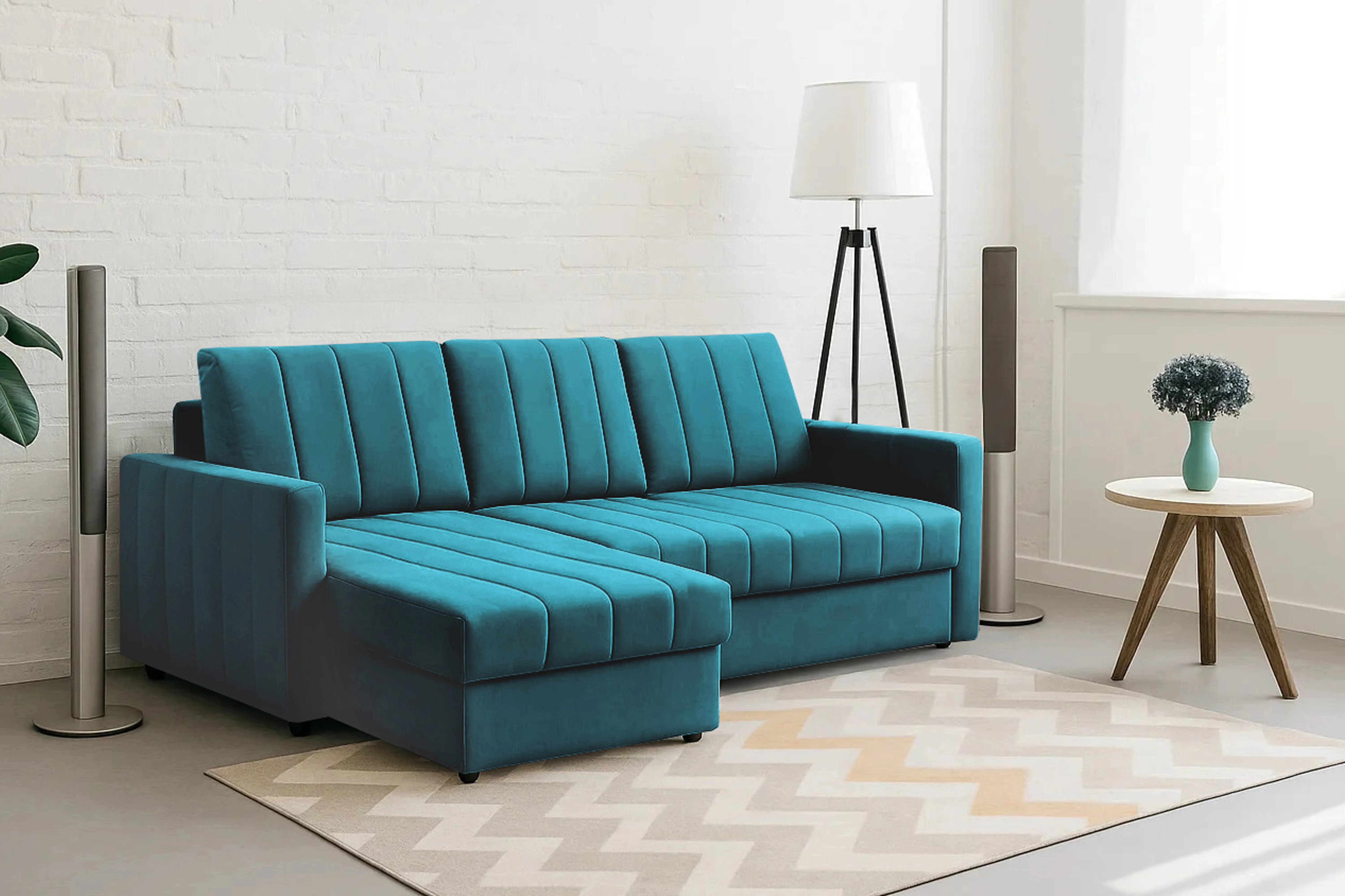 Диван удачно зонирует пространство и дополняет необходимым функционалом. В основании спального места блок независимых пружин для комфортного сна. Вместительный ящик для хранения постельных принадлежностей.