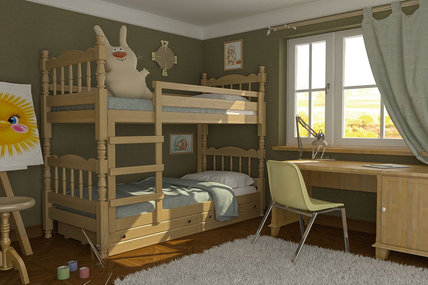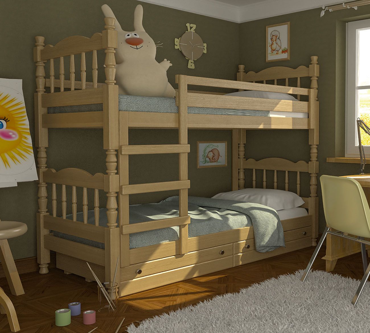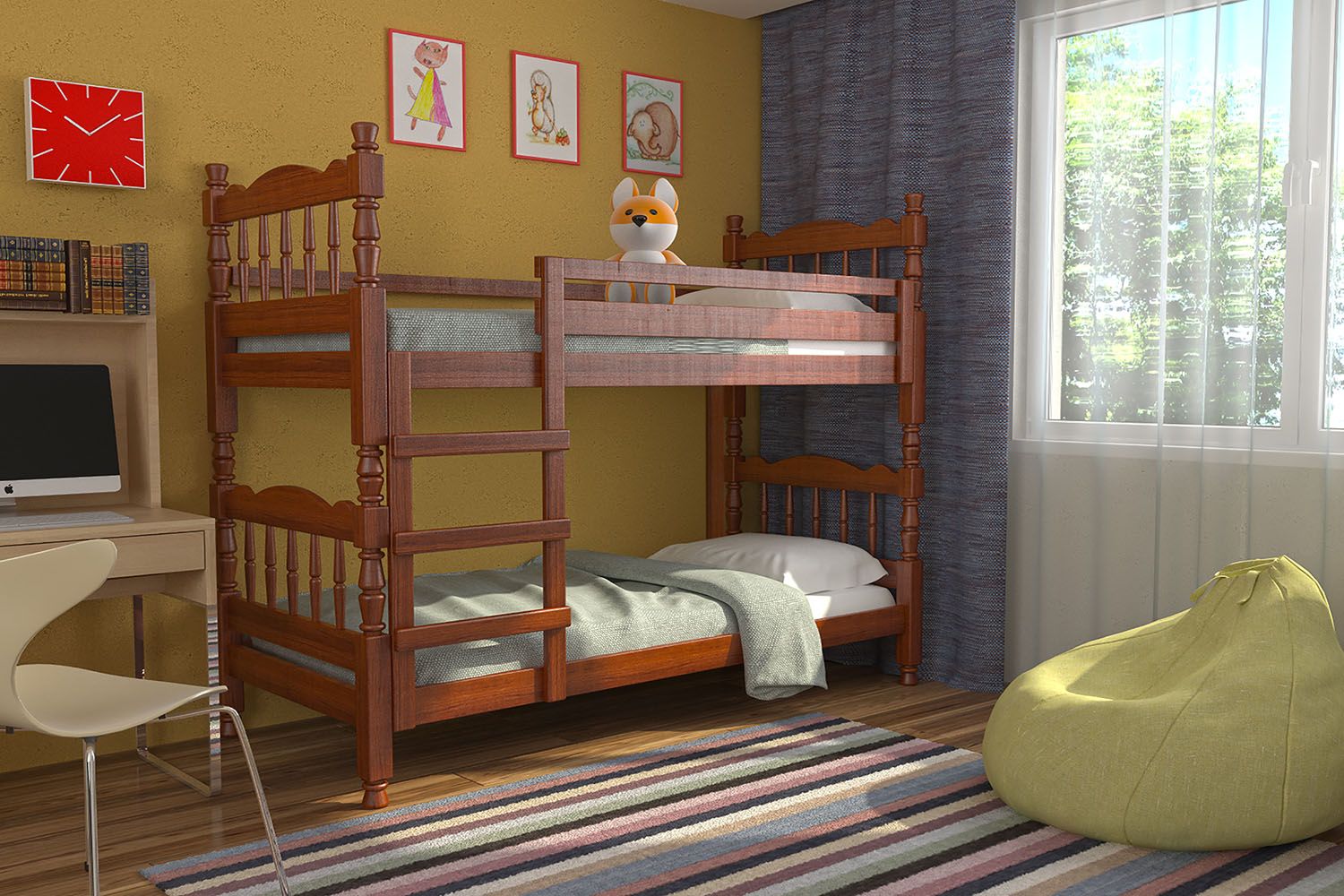 Можно использовать как две отдельные кровати. Размер спального места: 800х1900 мм.