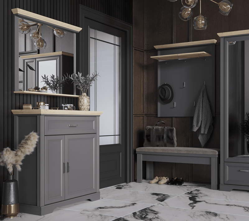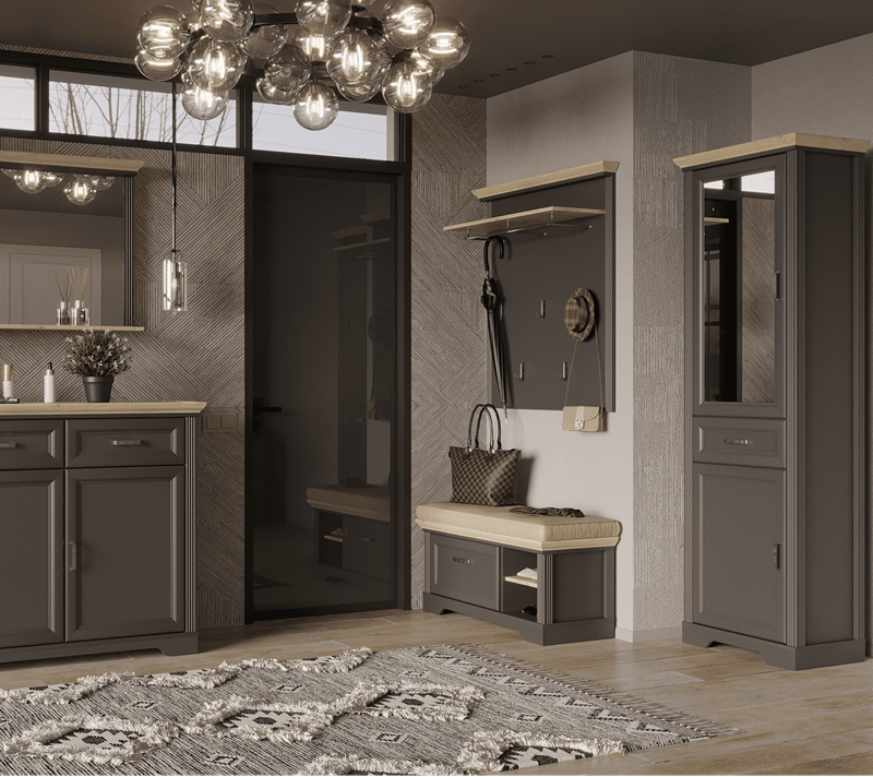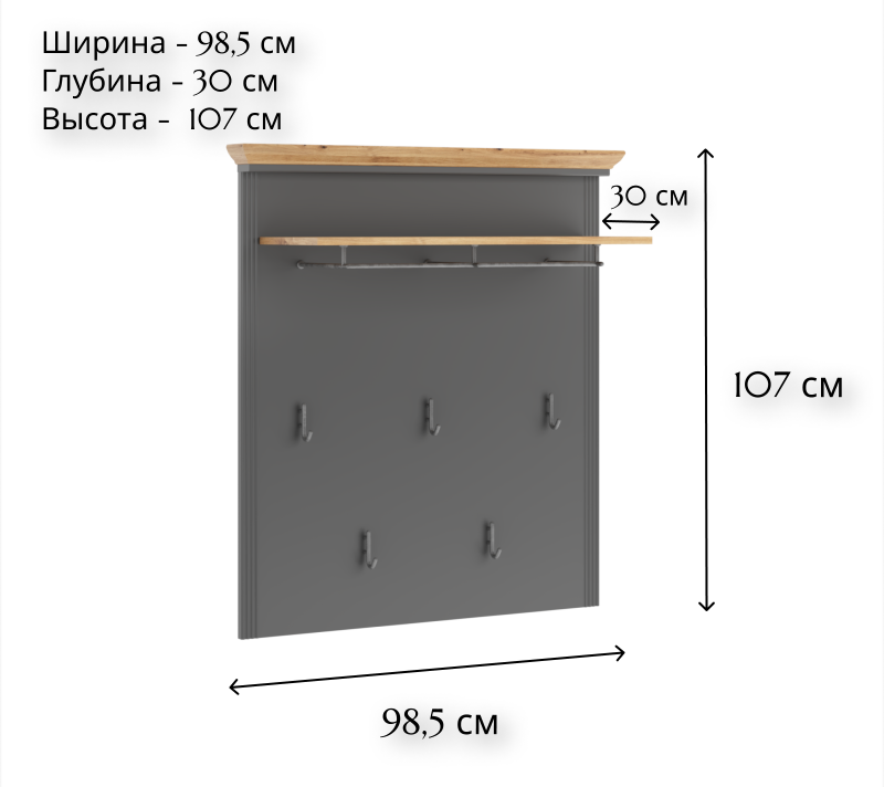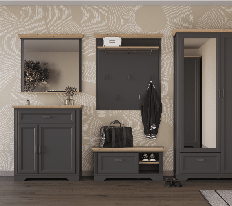 Навесная вешалка Jasmin графит/дуб артизан WIE функционально дополнит обувницу из одноименной коллекции.